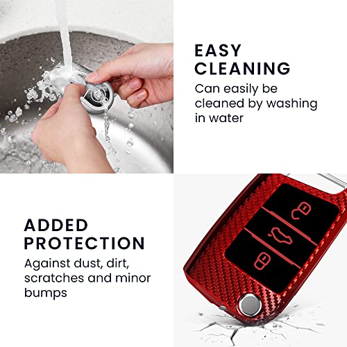 Kwmobile Cover copri-chiave compatibile con VW Golf 7 MK7 con 3 tasti - Guscio Protettivo chiavi Auto in Soft TPU - Custodia protettiva - Effetto Carbonio rosso