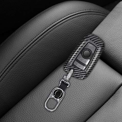 Kwmobile Cover copri-chiave Compatibile con BMW con 3 tasti controllo remoto (solo Keyless Go) - Custodia Rigida in Effetto Carbonio nero - Apertura Magnetica e Catenina