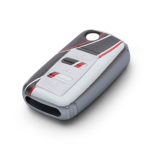 Kwmobile Cover Coprichiave Compatibile con VW Skoda Seat con 3 tasti - Fodero Chiave Auto Similpelle - Bumper Antiurto Due Colori rosso/nero/bianco