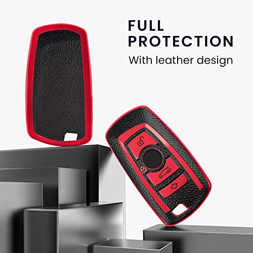 Kwmobile Cover Coprichiave Compatibile con BMW con 3 tasti controllo remoto (solo Keyless Go) - Foderina Chiave Auto Effetto Pelle - Bumper Antiurto e Protezione Tasti rosso/nero