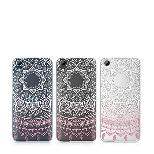 Kwmobile Cover per HTC Desire 626G - Custodia rigida trasparente per cellulare - Back Case cristallo in plastica rosa bianco trasparente