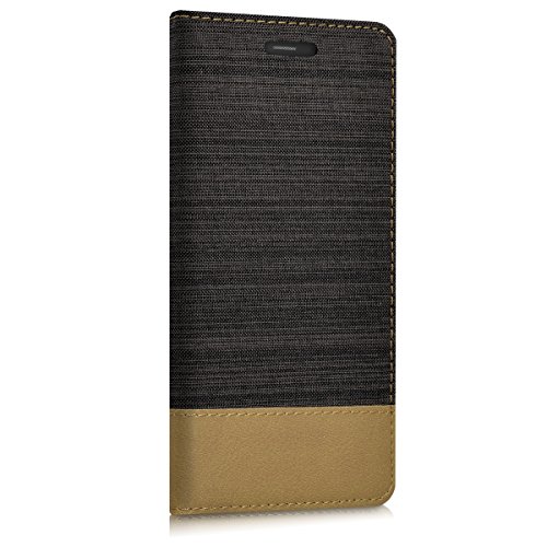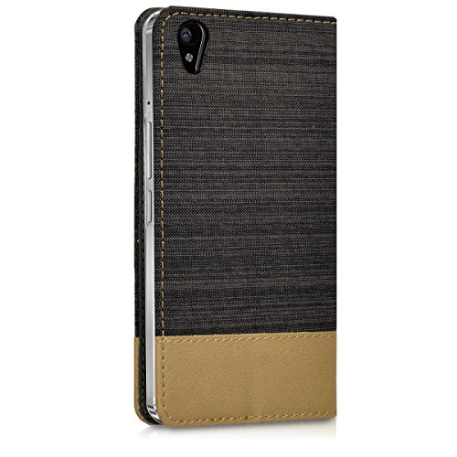 Kwmobile Cover Flip per OnePlus X (5.0") - Custodia a libro protettiva per cellulare in simil pelle e tessuto antracite marrone