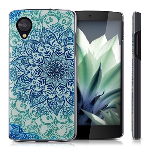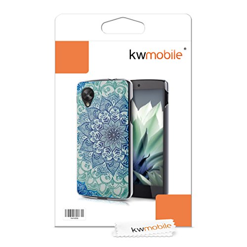 Kwmobile Cover per LG Google Nexus 5 - Custodia trasparente per cellulare - Back cover cristallo in plastica rigida Design ornamento floreale blu verde trasparente