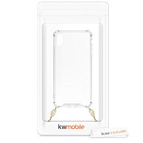 Kwmobile Cover a tracolla compatibile con Apple iPhone XS Max - Back Case in silicone Cover con laccio metallico per il collo - Custodia con cordino in metallo