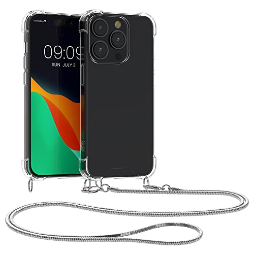 Kwmobile Cover a tracolla compatibile con Apple iPhone 14 Pro - Back Case in silicone Cover con laccio metallico per il collo - Custodia con cordino in metallo
