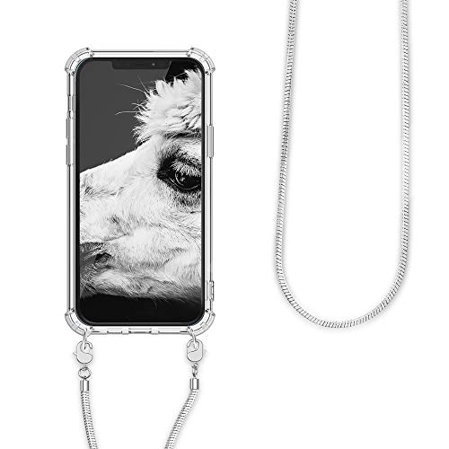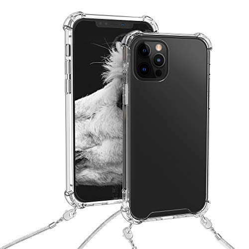 Kwmobile Cover a tracolla compatibile con Apple iPhone 12 Pro Max - Back Case in silicone Cover con laccio metallico per il collo - Custodia con cordino in metallo