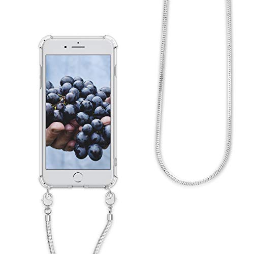 Kwmobile Cover a tracolla compatibile con Apple iPhone 7 Plus/iPhone 8 Plus - Back Case in silicone Cover con laccio metallico per il collo - Custodia con cordino in metallo