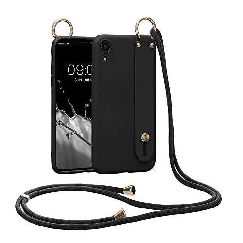 Kwmobile Cover a Tracolla Compatibile con Apple iPhone XR - Back Case in Silicone nero - Custodia con Cordino e Passante Cinta