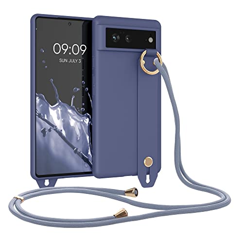 Kwmobile Cover a Tracolla Compatibile con Google Pixel 6 - Back Case in Silicone lavanda opaco - Custodia con Cordino e Passante Cinta