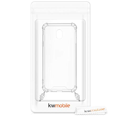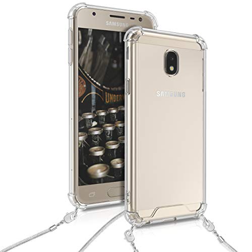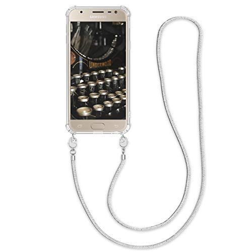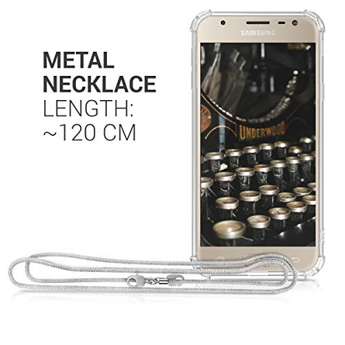 Kwmobile Cover a tracolla compatibile con Samsung Galaxy J3 (2017) DUOS - Back Case in silicone Cover con laccio metallico per il collo - Custodia con cordino in metallo