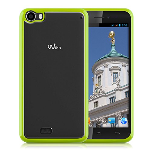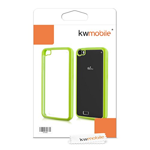 Kwmobile Cover per Wiko Lenny - Custodia trasparente per cellulare - Back cover cristallo in plastica rigida Design cornice verde trasparente