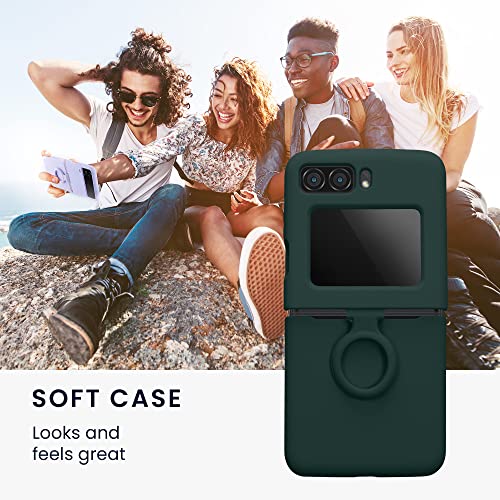 Kwmobile Custodia con Anello Compatibile con Motorola Razr 2022 - Cover Ultra Slim Silicone Morbido - Back Case Morbida TPU - verde muschio