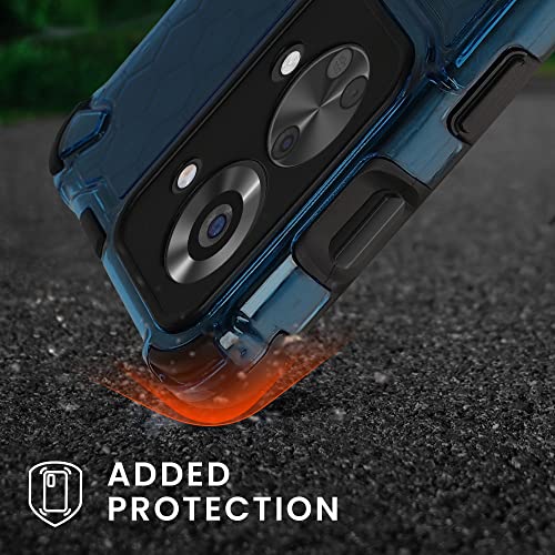 Kwmobile Custodia Antiurto Nido d'Ape Compatibile con OnePlus Nord 2T 5G - Cover Rigida Protezione Fotocamera Bordi Rialzati blu/trasparente matt
