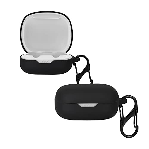 Kwmobile Custodia Caricatore Compatibile con JBL Wave Flex - Cover Silicone Nero - Rivestimento Gommato Protezione con Gancio