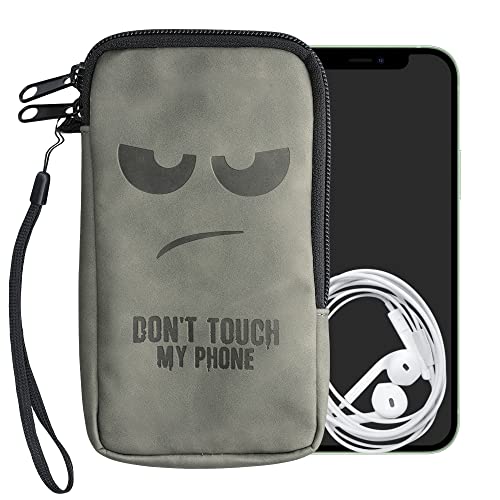 Kwmobile Custodia Cellulare in Morbida Pelle Sintetica con Zip per Smartphone - Portacellulare con Cerniera - Borsa Don't touch my phone grigio