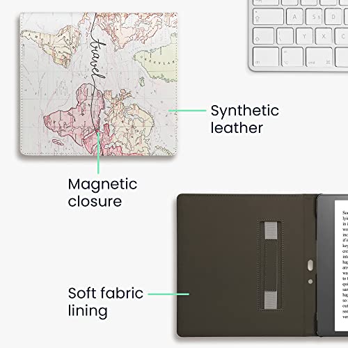 Kwmobile Custodia Cinturino Mano Compatibile con AmazonKindle Scribe Cover - eBook Reader Case - Cover eReader Simil Pelle Mappa del mondo