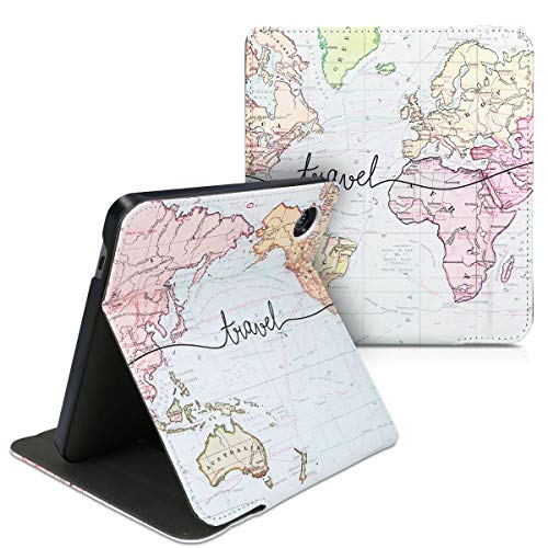 Kwmobile Custodia Cinturino Mano Compatibile con KoboLibra H2O Cover - Custodia eReader Stand - Nero/Multicolore Mappa del Mondo