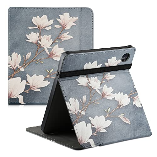 Kwmobile Custodia Cinturino Mano Compatibile con KoboSage Cover - Custodia eReader Stand - marrone grigio/bianco/grigio blu Magnolie