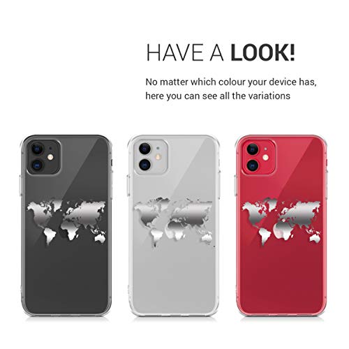Kwmobile Custodia Compatibile con Apple iPhone 11 - Cover Silicone TPU - Protezione Posteriore - Sagoma Mondo argento/trasparente