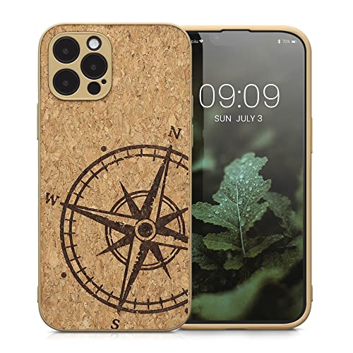 Kwmobile Custodia compatibile con Apple iPhone 12 Pro - Cover in Sughero - Bumper Antiurto in Silicone TPU Gommato - Protezione Bussola vintage