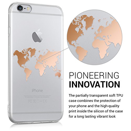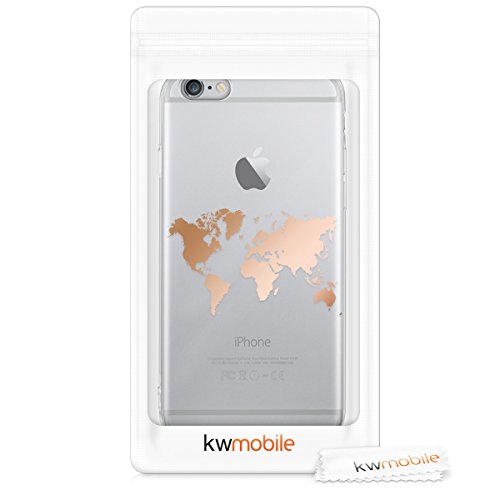 Kwmobile Custodia Compatibile con Apple iPhone 6 / 6S - Cover Silicone TPU - Protezione Posteriore - Sagoma Mondo oro rosa/trasparente