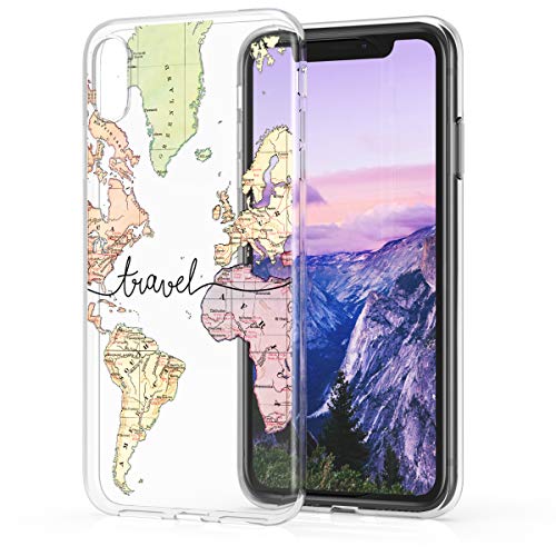 Kwmobile Custodia Compatibile con Apple iPhone XR - Cover Silicone TPU - Protezione Back Case - Mappa del Mondo Nero/Multicolore/Trasparente