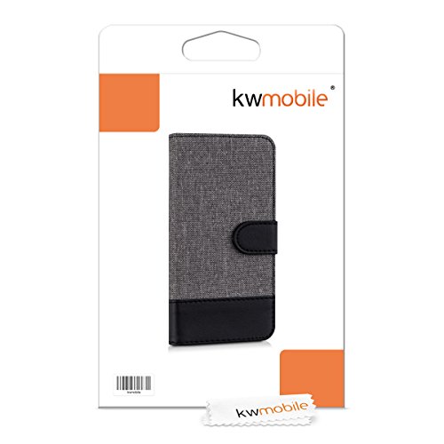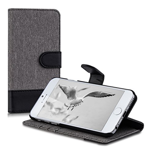 Kwmobile Custodia Compatibile con Apple iPhone 6 / 6S Cover Portafoglio - Case Chiusura Magnetica Portacarte Tessuto Similpelle grigio/nero