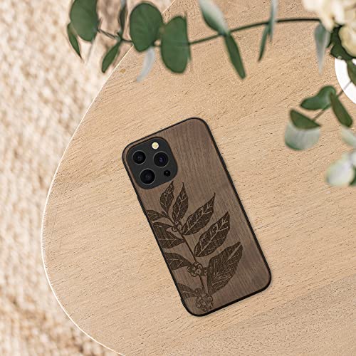 Kwmobile Custodia Compatibile con Apple iPhone 13 Pro Max Cover - Back Case in Legno con Bumper in Silicone TPU - Foglia marrone scuro
