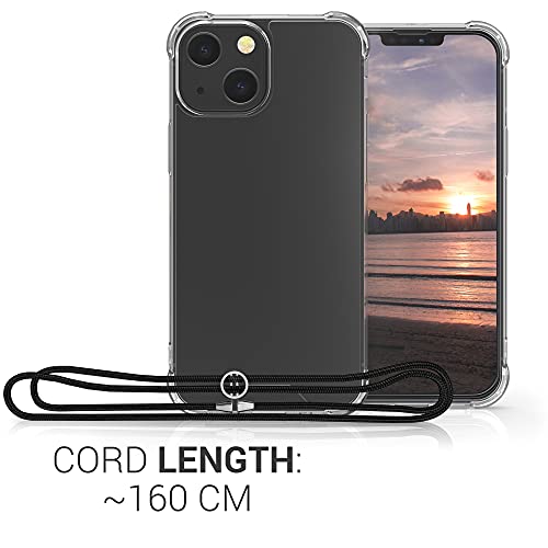 Kwmobile Custodia Compatibile con Apple iPhone 13 mini Cover - Back Case in Silicone TPU - Protezione Smartphone con Cordino - nero/trasparente