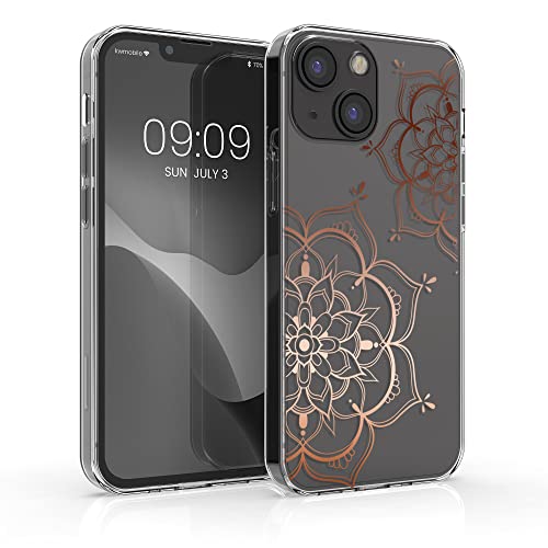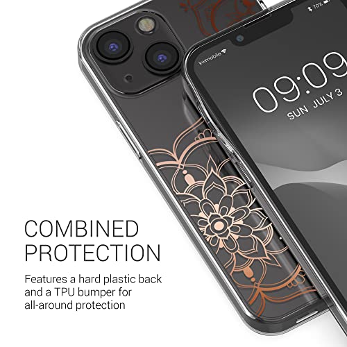 Kwmobile Custodia Compatibile con Apple iPhone 13 mini - Cover Silicone TPU - Protezione Posteriore - Fiori Gemelli oro rosa/trasparente