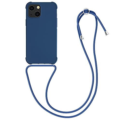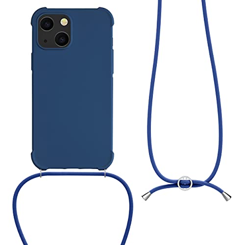 Kwmobile Custodia Compatibile con Apple iPhone 13 mini Cover - Back Case in Silicone TPU - Protezione Smartphone con Cordino - blu scuro