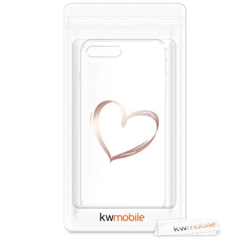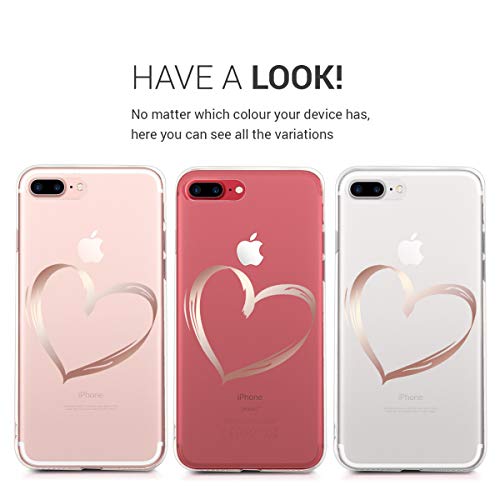 Kwmobile Custodia Compatibile con Apple iPhone 7 Plus/iPhone 8 Plus - Cover Silicone TPU - Protezione Posteriore - Cuore oro rosa/trasparente