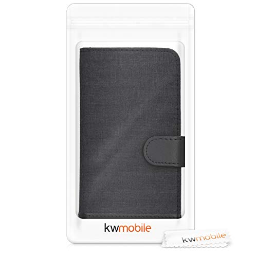 Kwmobile Custodia Compatibile con ZTE Axon 10 PRO Cover Portafoglio - Case Chiusura Magnetica Portacarte Tessuto Similpelle Antracite/Nero
