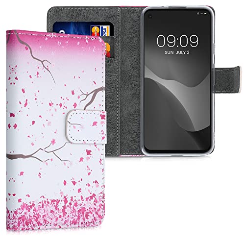Kwmobile Custodia Compatibile con Google Pixel 4a Cover - Portafoglio Pelle Sintetica con Chiusura Magnetica - Porta Carte Pioggia di Petali
