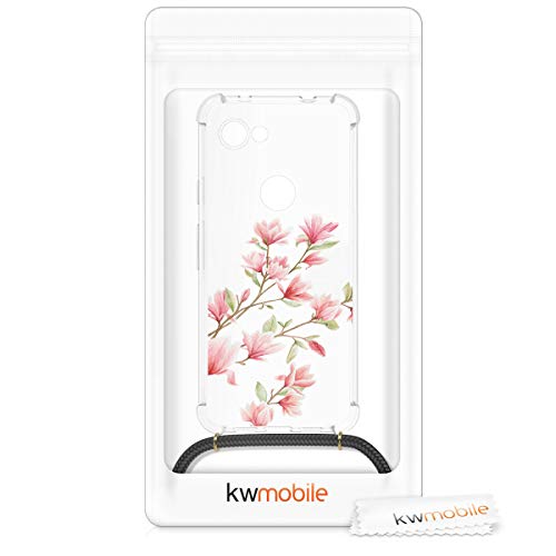Kwmobile Custodia Compatibile con Google Pixel 3a Cover - Back Case in Silicone TPU - Protezione Smartphone con Cordino - rosa/bianco/trasparente