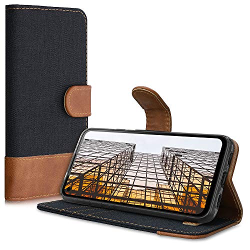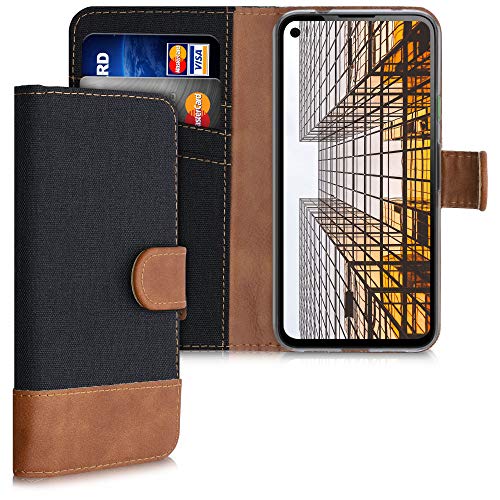 Kwmobile Custodia Compatibile con Google Pixel 4a Cover Portafoglio - Case Chiusura Magnetica Portacarte Tessuto Similpelle nero/marrone