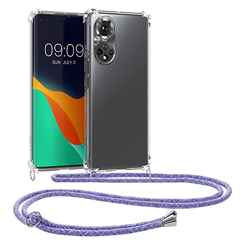 Kwmobile Custodia Compatibile con HONOR 50 Cover - Back Case in Silicone TPU - Protezione Smartphone con Cordino - lavanda/viola/viola/trasparente