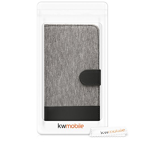 Kwmobile Custodia Compatibile con Honor 9 Lite Cover Portafoglio - Case Chiusura Magnetica Portacarte Tessuto Similpelle grigio/nero