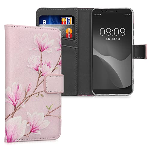 Kwmobile Custodia Compatibile con Honor 9 Lite Cover - Portafoglio Pelle Sintetica con Chiusura Magnetica - Porta Carte Magnolie