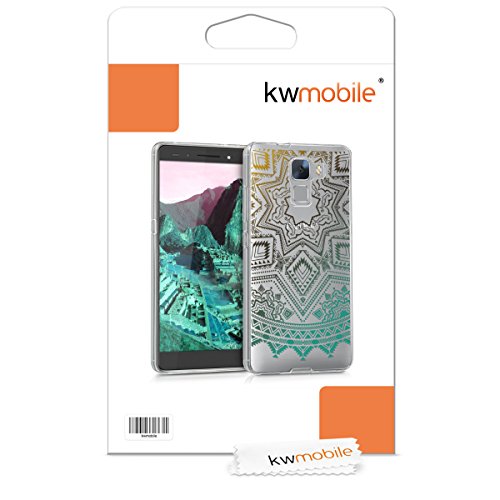 Kwmobile Custodia Compatibile con Honor 7/7 Premium - Cover Silicone TPU - Protezione Back Case - Sole Azteco Giallo/Turchese/Trasparente