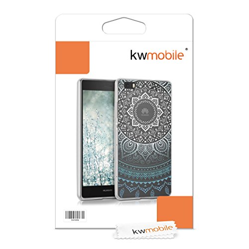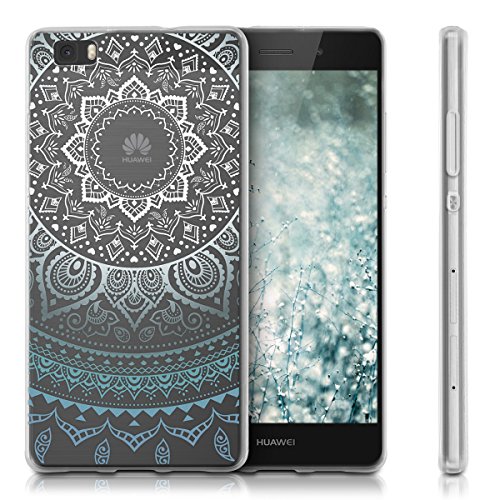 Kwmobile Custodia Compatibile con Huawei P8 Lite (2015) - Cover Silicone TPU - Protezione Back Case - Sole indiano blu/bianco/trasparente