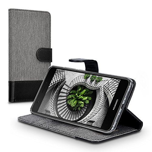Kwmobile Custodia Compatibile con Huawei Nova Cover Portafoglio - Case Chiusura Magnetica Portacarte Tessuto Similpelle grigio/nero