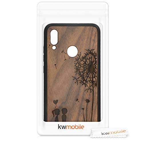 Kwmobile Custodia Compatibile con Huawei P Smart (2019) Cover - Back Case in Legno con Bumper in Silicone TPU - Amore marrone scuro