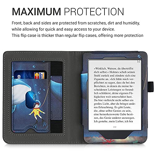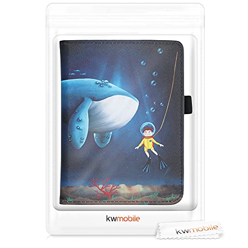Kwmobile Custodia Compatibile con Kobo Clara HD - Case Custodia Ecopelle Cover con Chiusura Magnetica Autosleep Leggio Cinturino Portatessere - Big Whale Giallo/Marrone/Blu Scuro