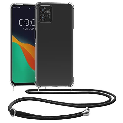 Kwmobile Custodia Compatibile con Motorola Moto G32 Cover - Back Case in Silicone TPU - Protezione Smartphone con Cordino - trasparente/nero
