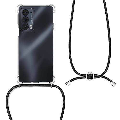 Kwmobile Custodia Compatibile con Motorola Edge 20 Cover - Back Case in Silicone TPU - Protezione Smartphone con Cordino - trasparente/nero