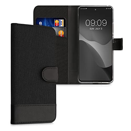 Kwmobile Custodia Compatibile con Motorola Edge 30 Fusion Cover Portafoglio - Case Chiusura Magnetica Portacarte Tessuto Similpelle antracite/nero