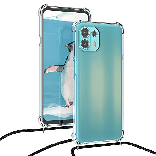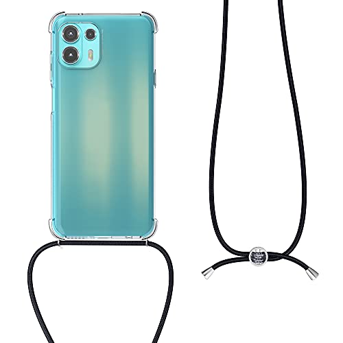 Kwmobile Custodia Compatibile con Motorola Edge 20 Lite Cover - Back Case in Silicone TPU - Protezione Smartphone con Cordino - trasparente/nero