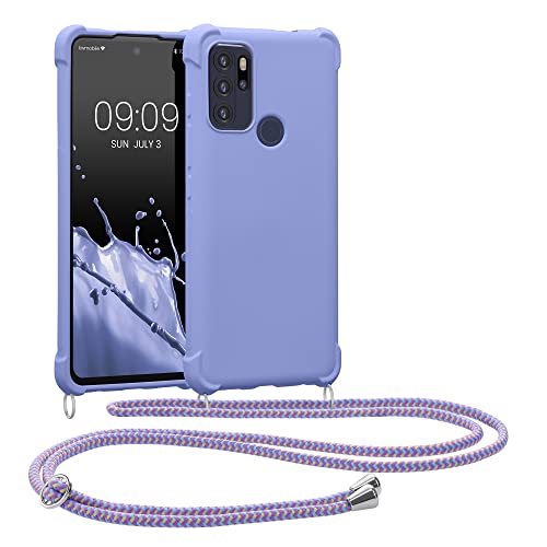 Kwmobile Custodia Compatibile con Motorola Moto G60S Cover - Back Case in Silicone TPU - Protezione Smartphone con Cordino - lavanda