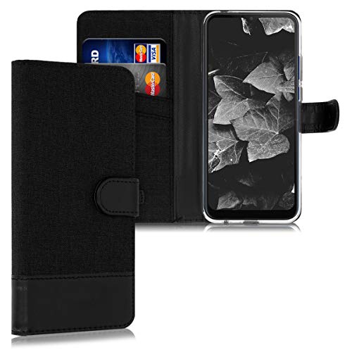Kwmobile Custodia Compatibile con Motorola Moto G8 Power Lite Cover Portafoglio - Case Chiusura Magnetica Portacarte Tessuto Similpelle nero/antracite